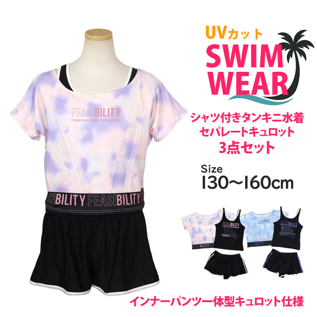 タイプ:セパレート水着 タンキニ キュロットパンツ Tシャツ カバーアップシャツ