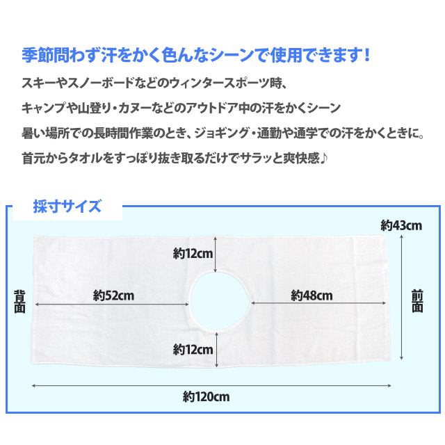また 長時間暑い場所での作業や自転車通勤通学など いろいろなシーンで活用できる汗とりタオル