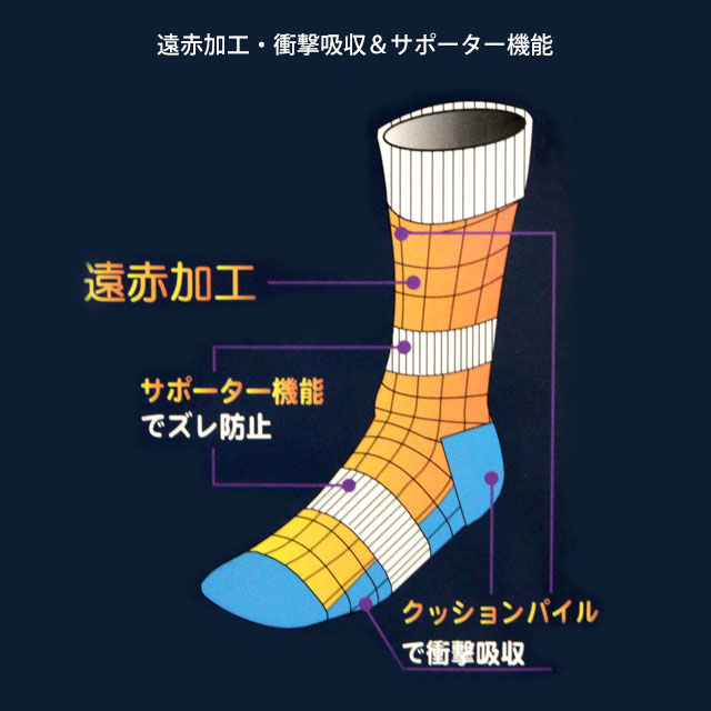 クッションパイル編みでサポート&衝撃吸収