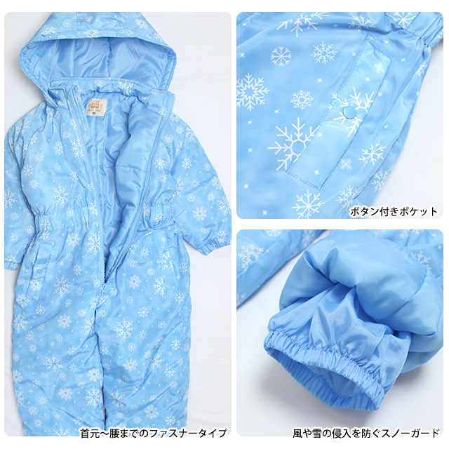 雪遊びやスキーや通園通学に大活躍する子供用 中綿 スノーコンビ(ワンピースタイプ)