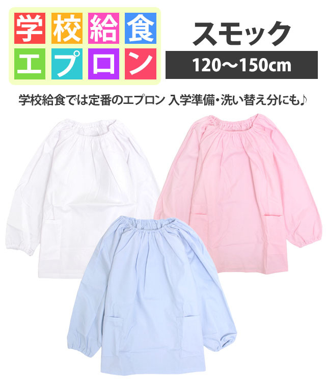 給食 エプロン スモック 長袖 子供用 無地 学校 子供エプロン 小学生