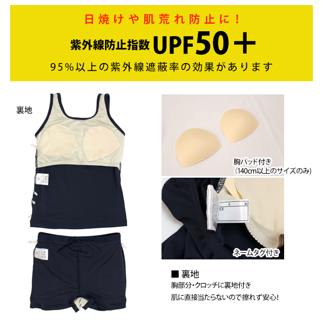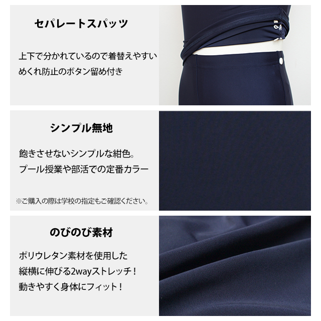 適用:プール授業 学校水着 ネイビー無地