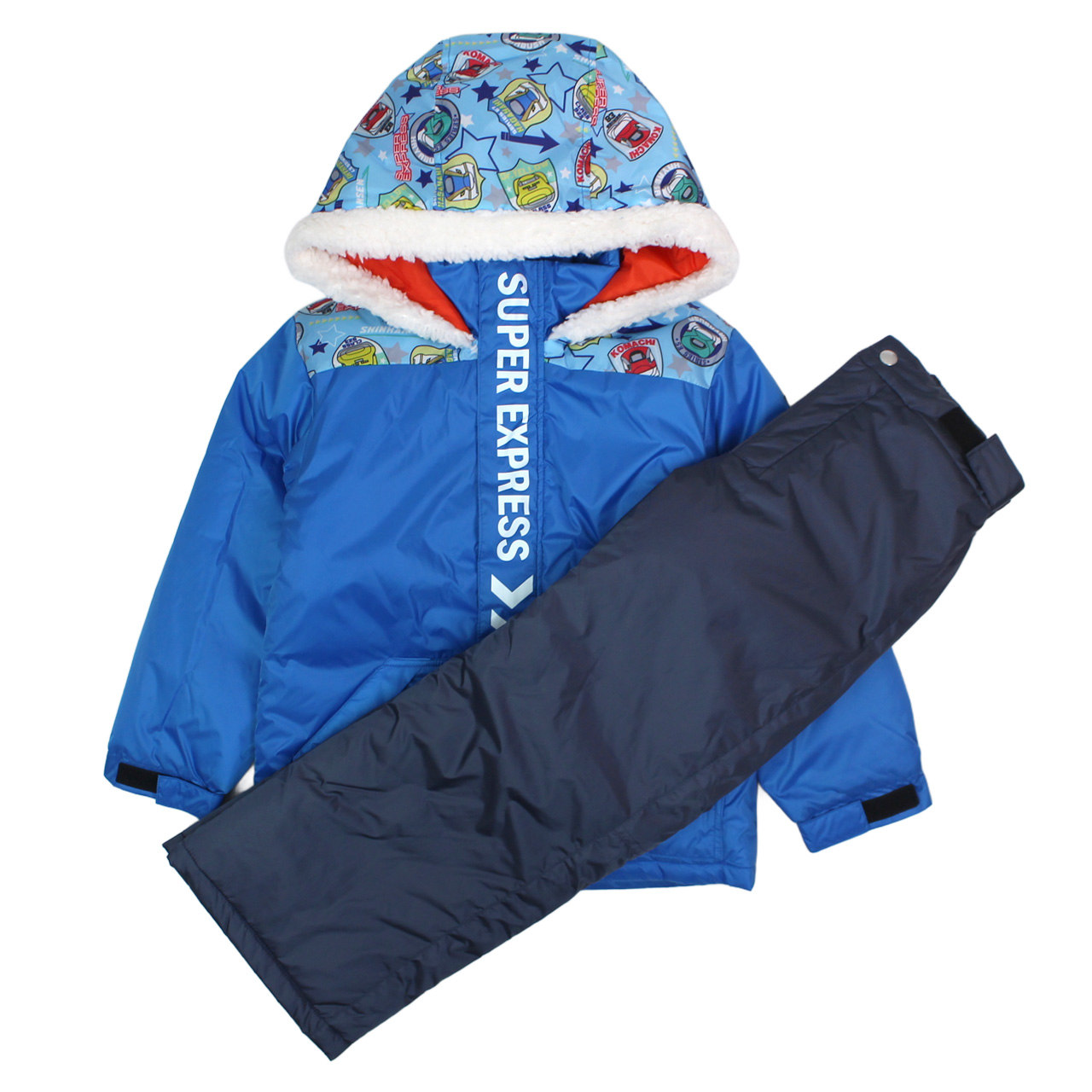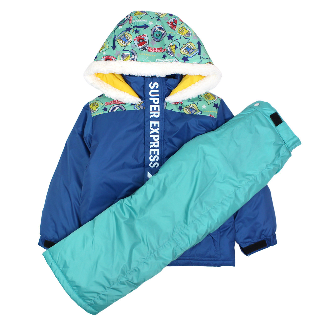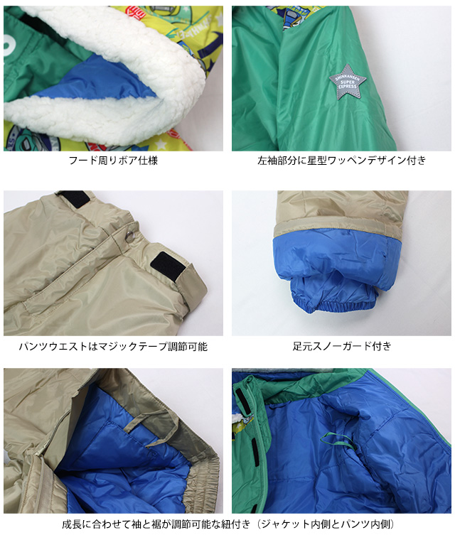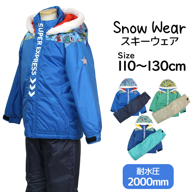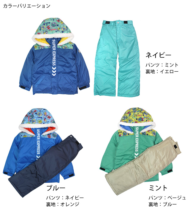 新幹線デザインが目を惹くキッズ用スノーウェア上下セット
