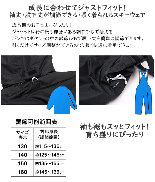 スキーウェア キッズ ジュニア 上下セット 男の子 子供 スノーウェア 耐水圧5000mm サイズ調整
