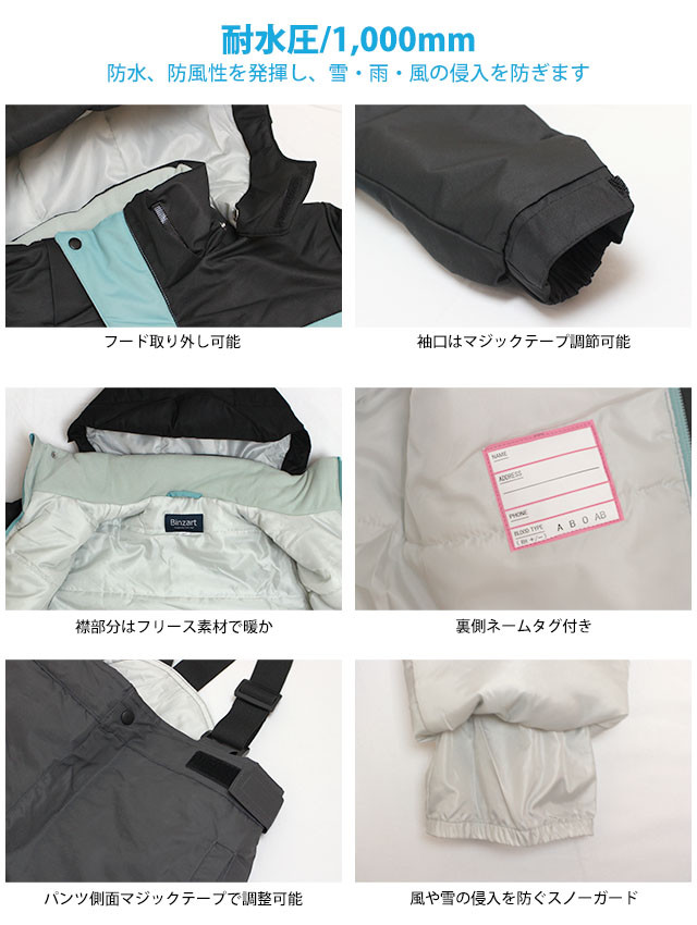 タイプ:スキースーツ 上下セット ジャケット スキーパンツ セパレート 女の子 ガールズ 女子